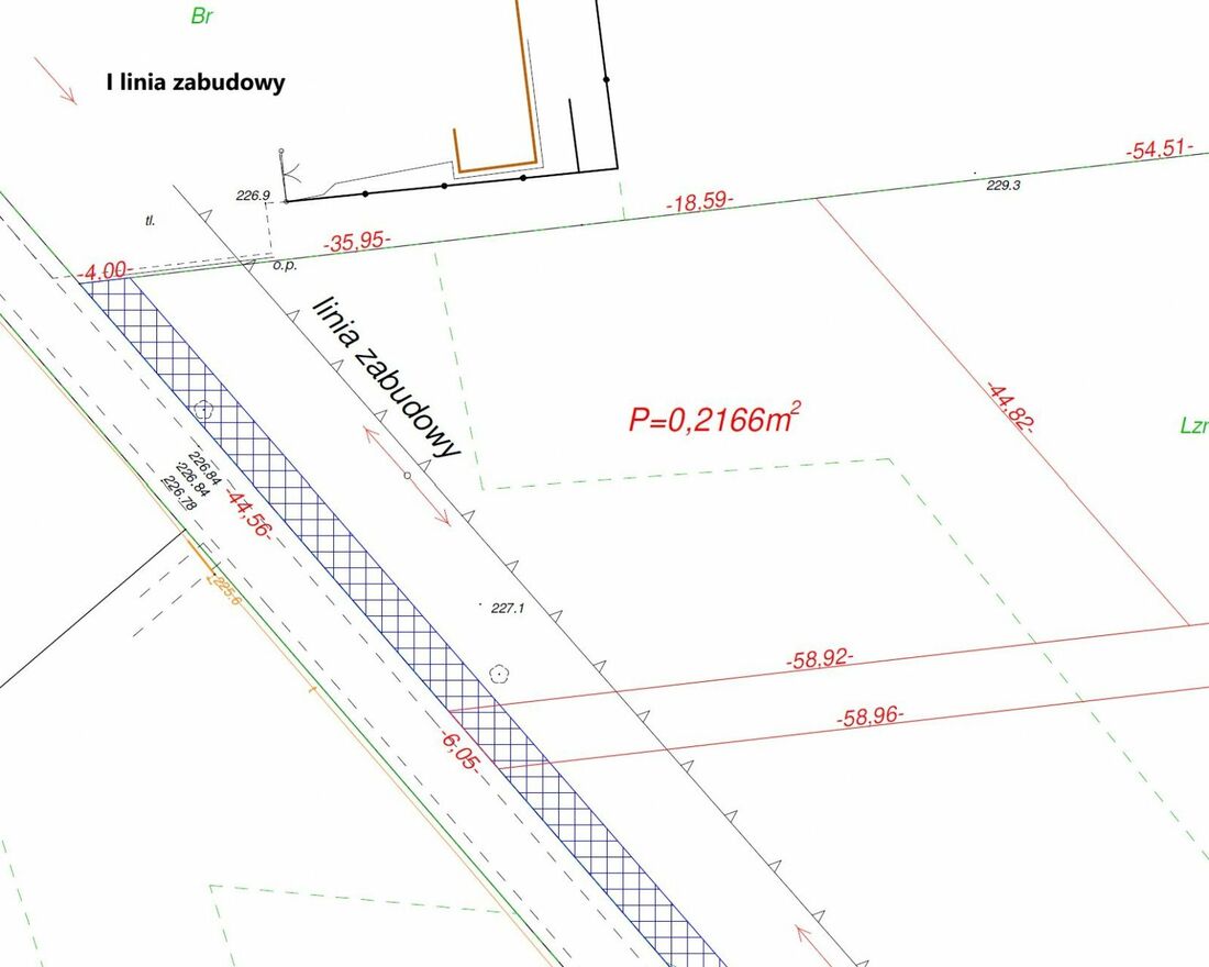Możliwość zakupu działki w drugiej linii o powierzchni 2000 m2 i wymiarach ok. 45 x 54 m wraz z udziałem w drodze wewnętrznej - w cenie również 219 tys. zł.